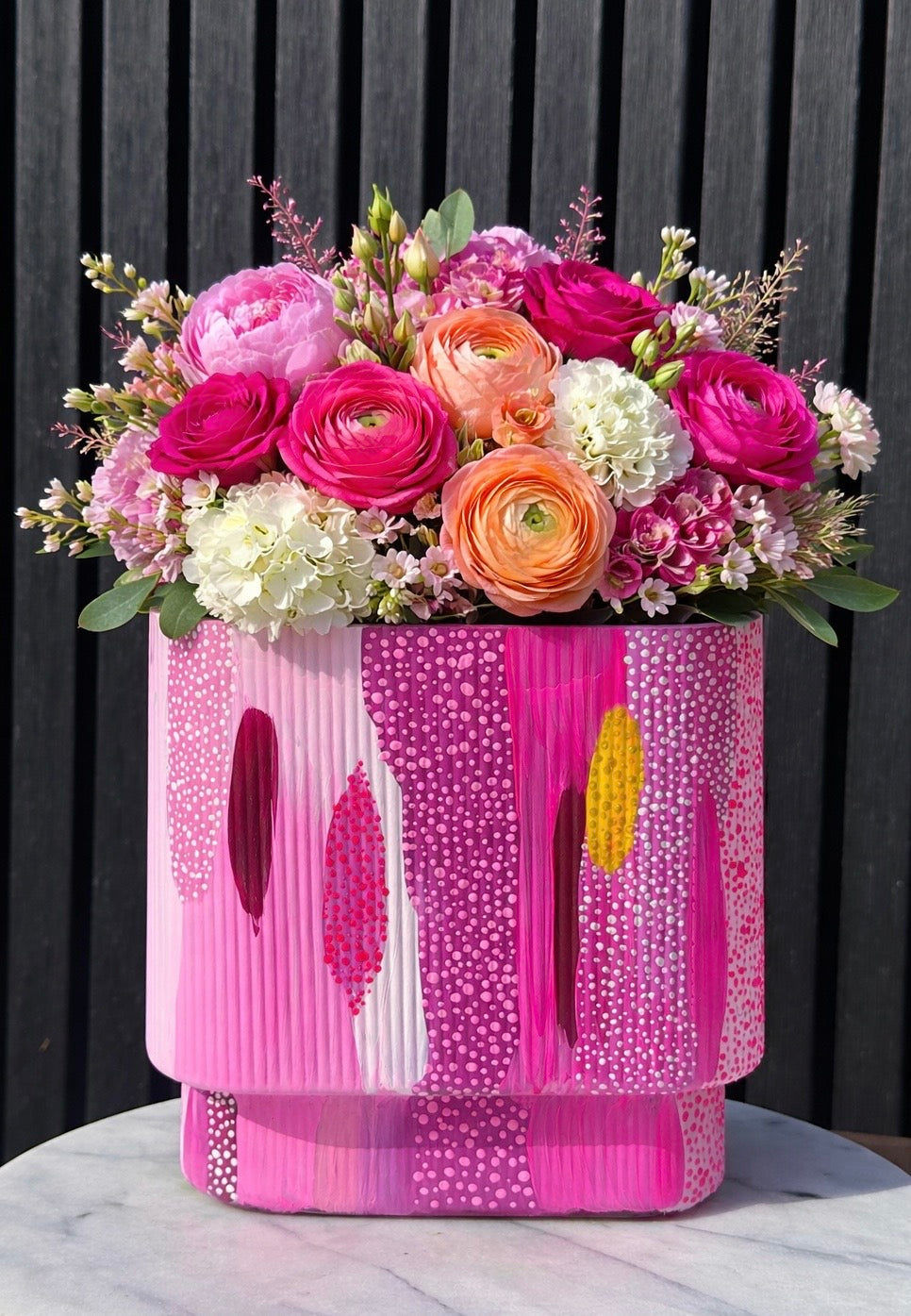 Each vase begins with careful surface preparation to ensure the perfect foundation for painting. The artwork is built up slowly, with every layer of paint allowed to fully dry before the next is applied. Once the original design is complete, the vase is sealed with 3–4 layers of waterproof protection for durability and longevity.