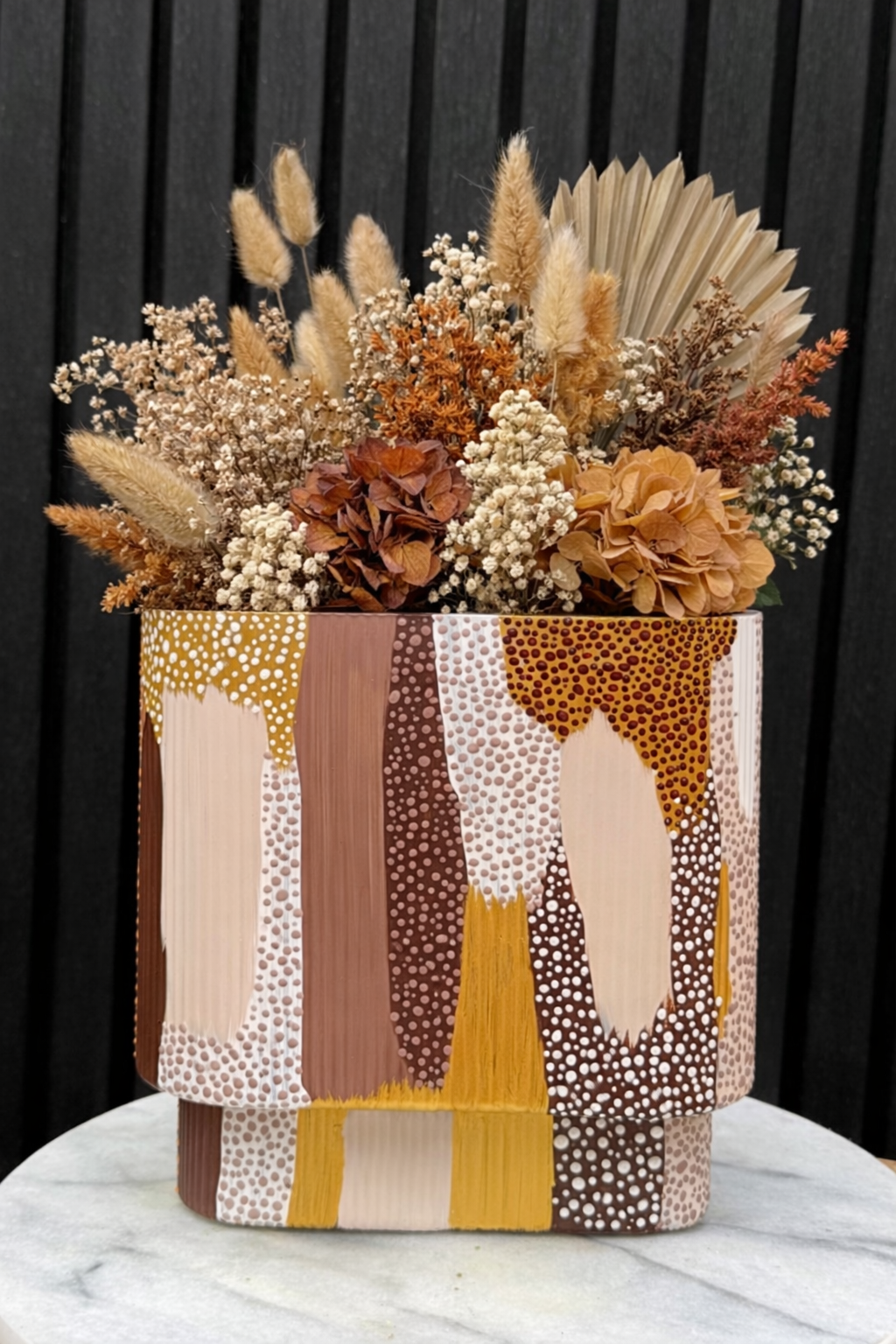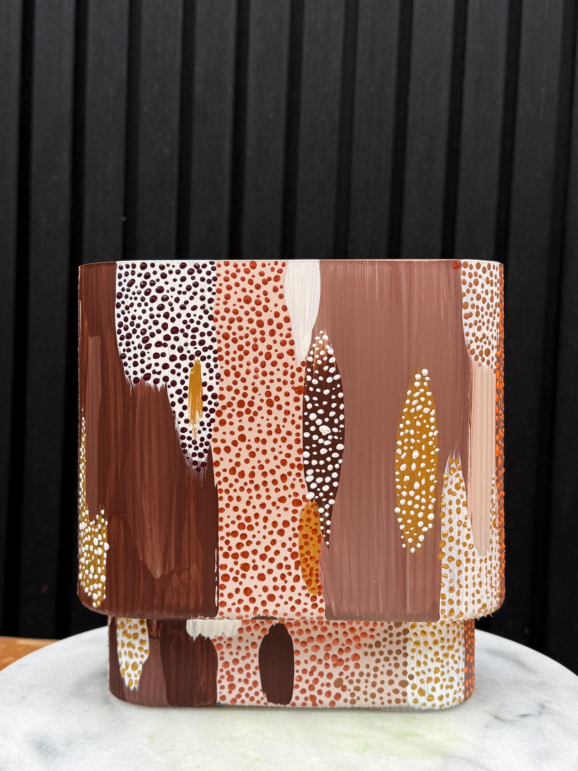 Each vase begins with careful surface preparation to ensure the perfect foundation for painting. The artwork is built up slowly, with every layer of paint allowed to fully dry before the next is applied. Once the original design is complete, the vase is sealed with 3–4 layers of waterproof protection for durability and longevity.