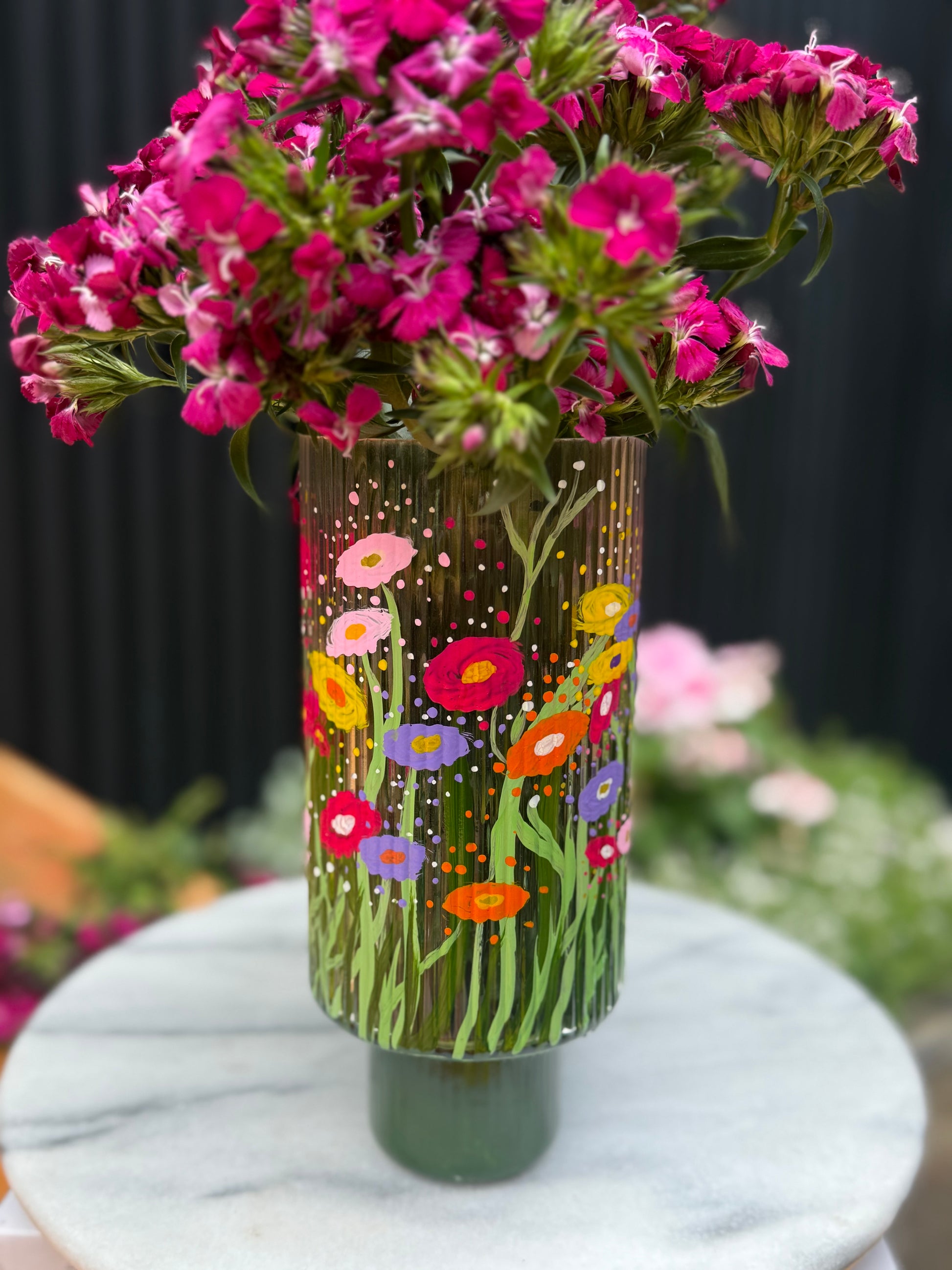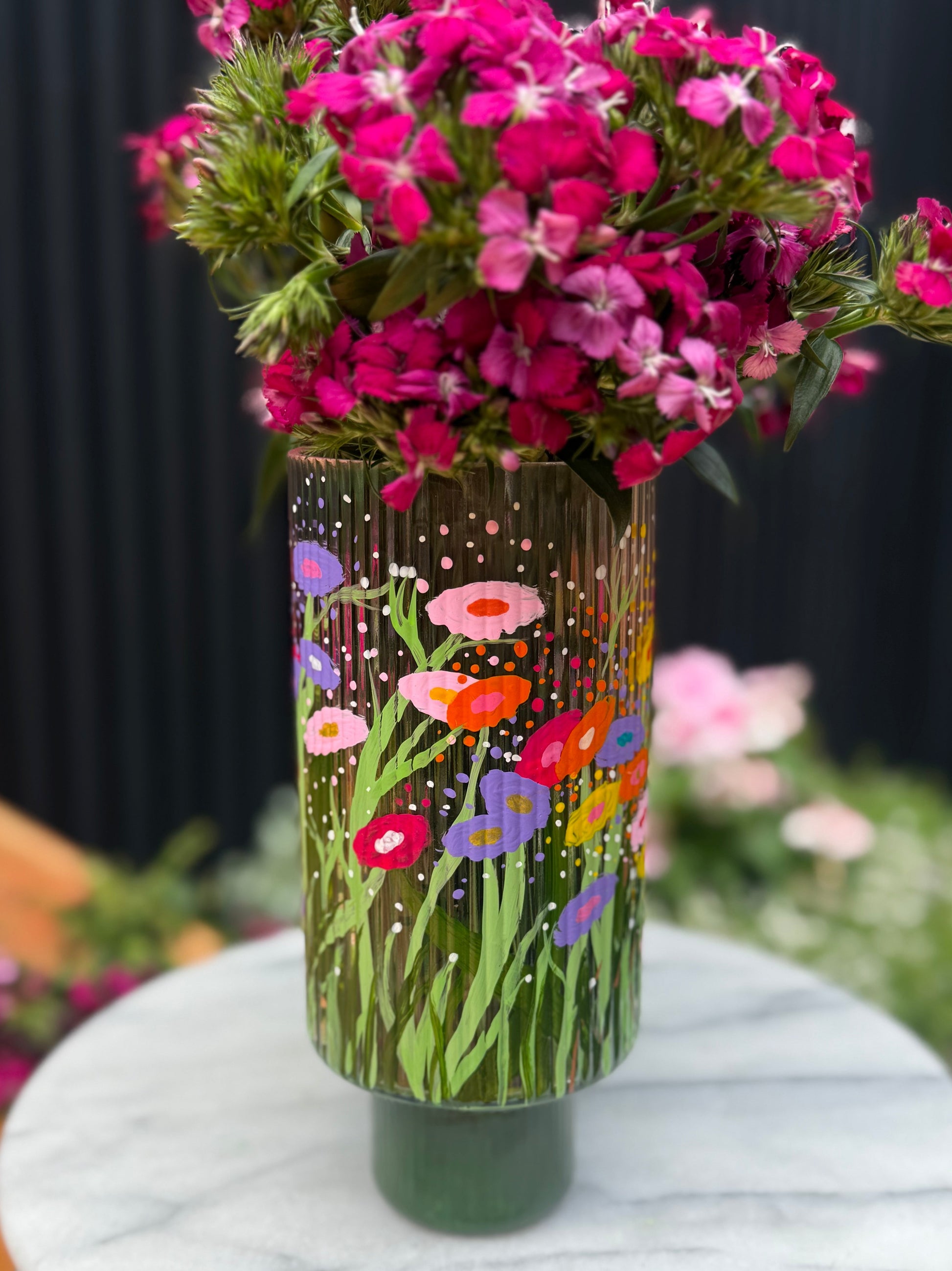 My latest vase collection — Inspired by the urge to paint on a seemingly smooth surface. However, I soon realised glass is not smooth. It’s rough and textured, and you’re not always sure what to expect. Much like motherhood.