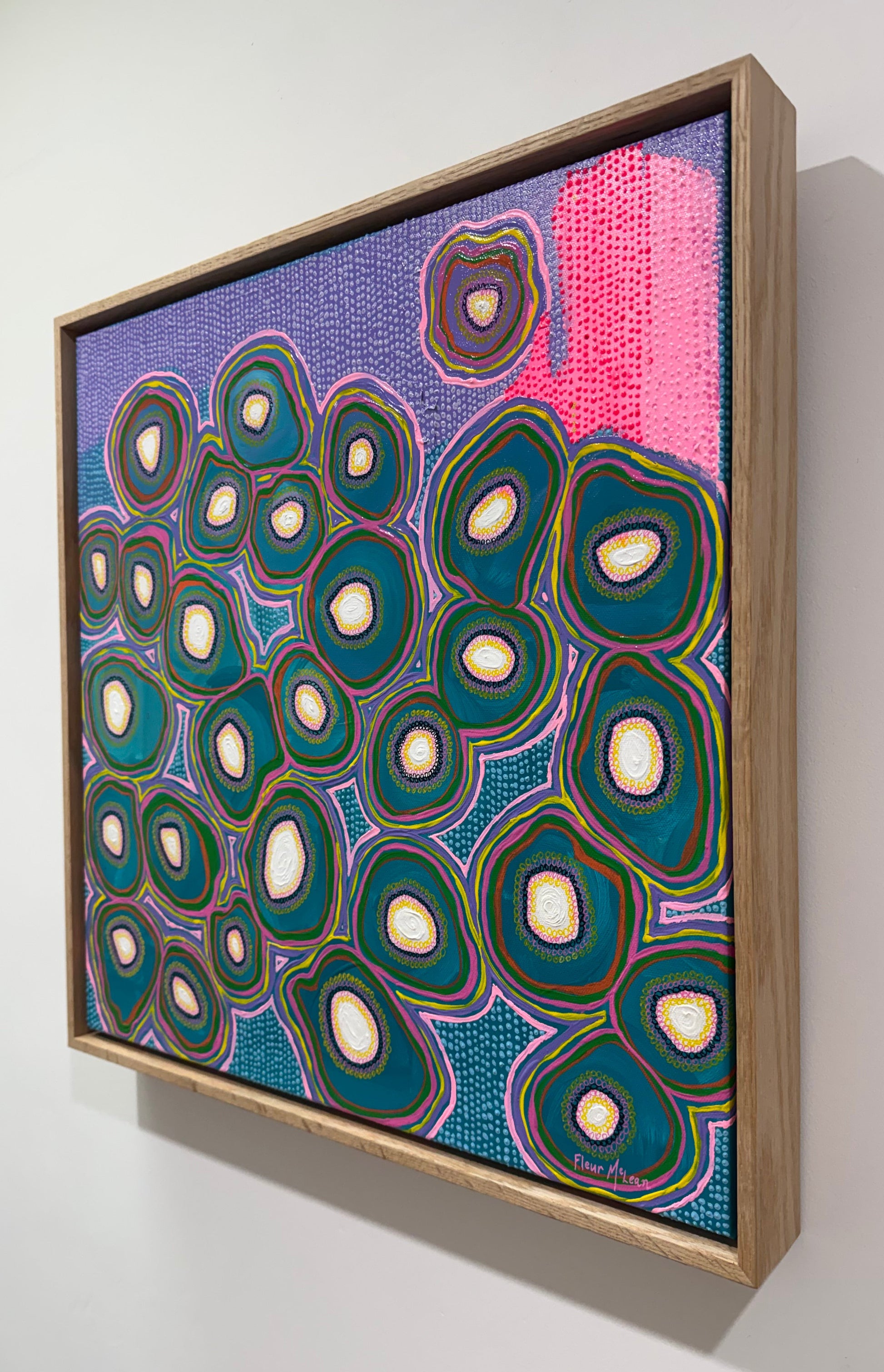 This piece is a vibrant, energetic exploration of movement, inspired by the rhythms and currents of the sea. The bubble-like forms pulse with layered colour and intricate dot work, creating depth and texture.